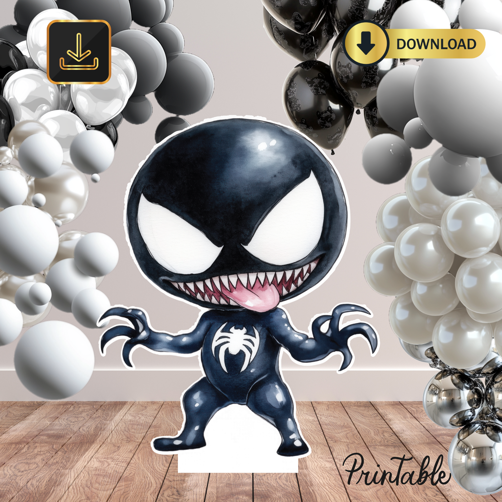 cute Superhero Captain Decor Cutout (Digital File), Cartoons cut outs, and party signs. Life Size Cutouts, Iron man, Spider, Venom, batman