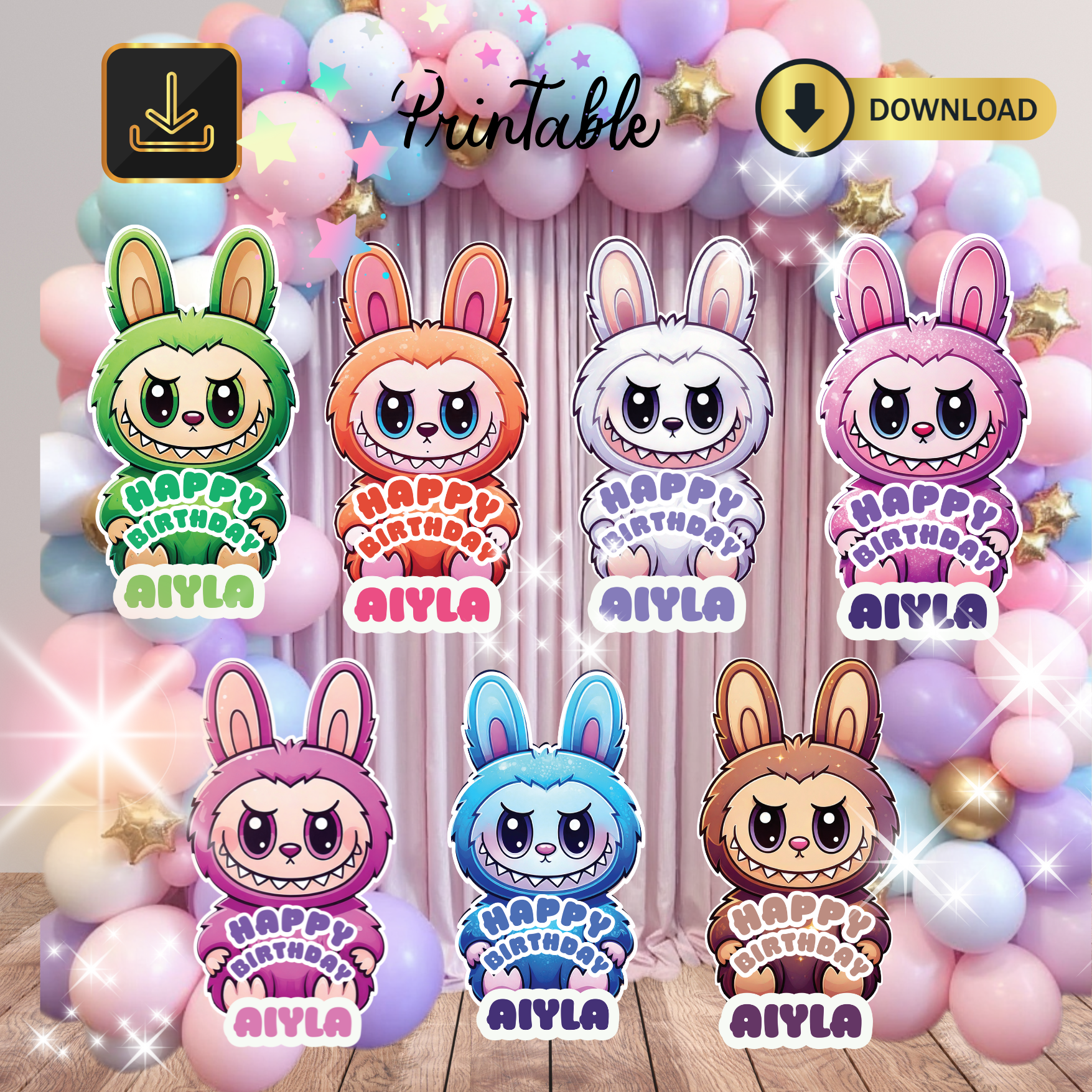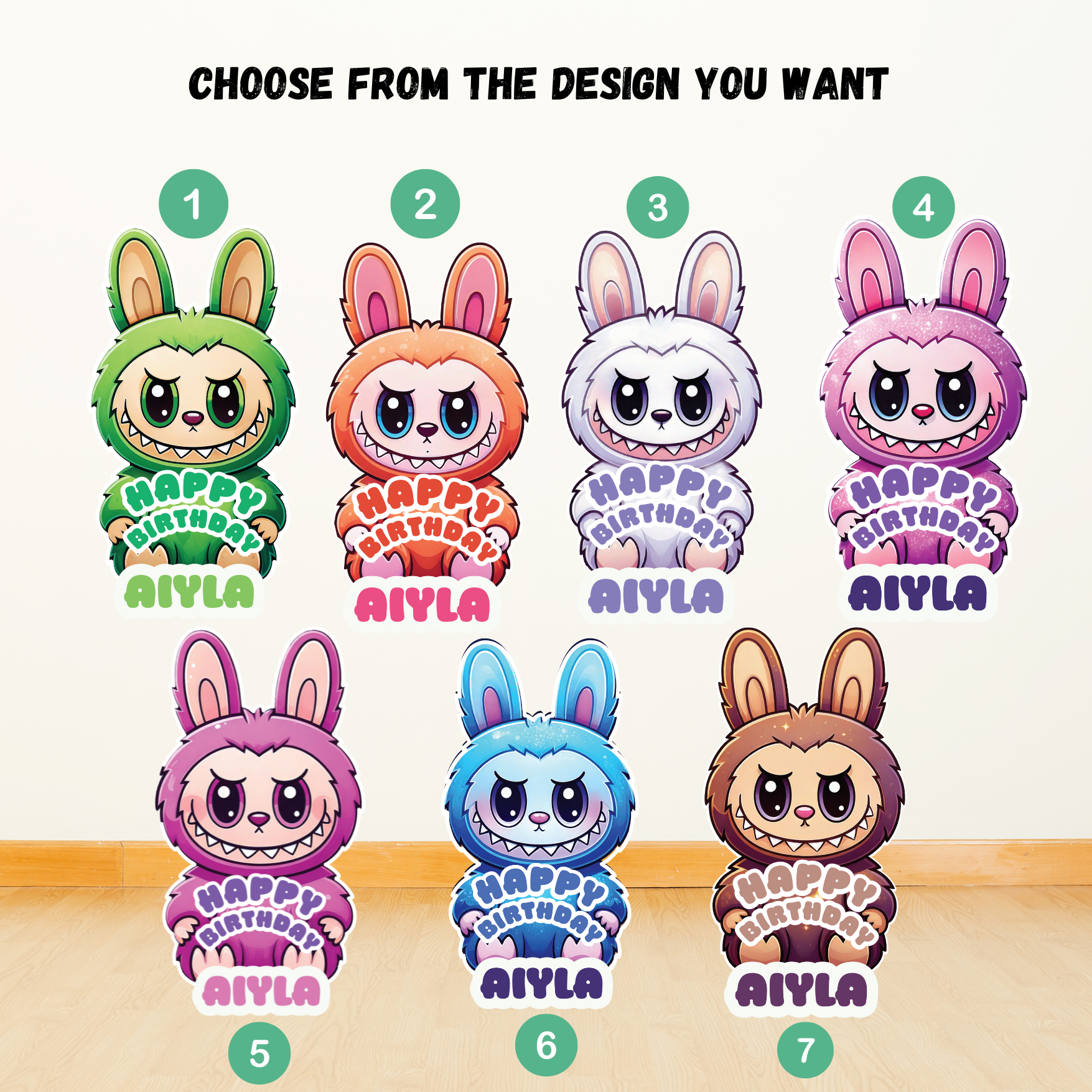 Bring your birthday party to life with this cute and quirky Labubu character cutout! . Choose from 7 designs. Standing tall and full of charm, Labubu adds a playful touch to any celebration – whether it’s welcoming guests at the entrance, posing for fun photo ops, or simply adding a splash of personality to your party décor.
