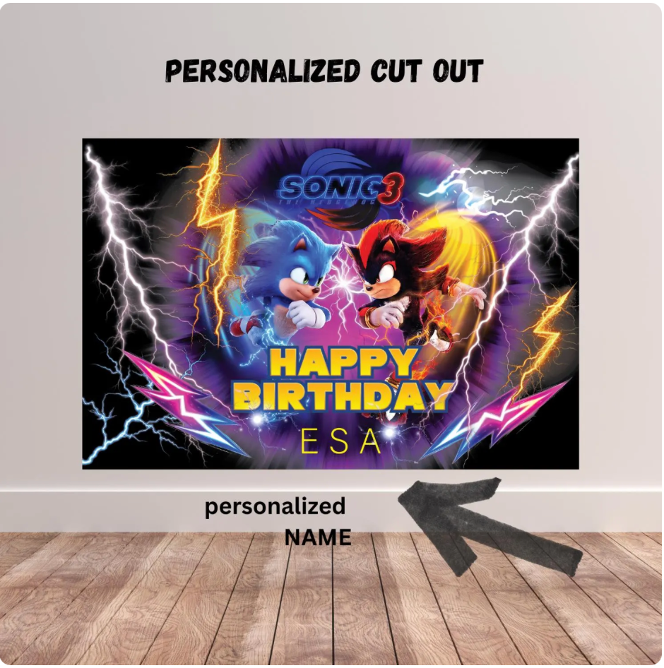 Sonic Birthday Party Backdrop/sonic Hedgehog 3 Birthday Banner/custom Sonic Backdrop/kids Birthday Decor/custom Birthday Backdrop